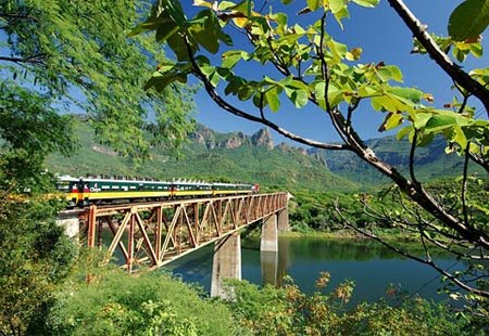 The Ferrocarril Chihuahua al Pacifico — better known as El Chepe — rolls though more than 400 miles of northwest Mexico, between the inland city of Chihuahua and Topolobampo on the Gulf of California. In between, it crosses the Sierra Madre and the incredibly scenic Copper Canyon, which is actually a set of canyons formed by six rivers. Along the way, El Chepe rumbles across 37 bridges, and ascends to an elevation of nearly 8,000 feet at the Continental Divide.