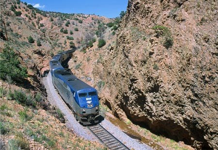 Wending its way through craggy red rocks, sagebrush-dotted desert and narrow canyons, the Southwest Chief tours much of what we think of as the Old West. The daily Amtrak train operates between Los Angeles and Chicago, rumbling through Arizona, New Mexico, Colorado, Kansas and Missouri en route. Along the way it passes mountains, ranches and old missions, and crosses the Rio Grande, the Missouri River and the Mississippi River. The Southwest Chief connects with the Grand Canyon Railway in Williams, Arizona, offering the perfect chance to see the South Rim of the Grand Canyon on a side trip.