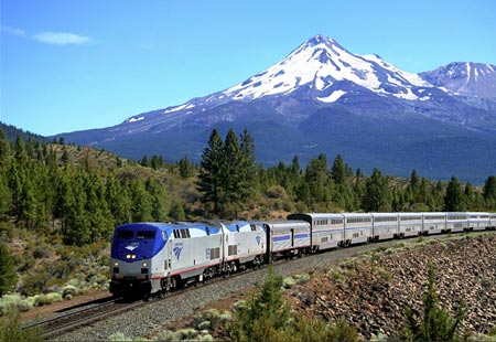 The trains on this Amtrak route are somewhat utilitarian, but the scenery is gorgeous. The Coast Starlight runs between Seattle and Los Angeles, showing off such sights as the Cascade range, verdant forests, the desert areas of Northern California, and volcanoes such as Mount Shasta and Mount Rainier. Just south of Sacramento, the route jogs over to the coast, and from Oakland southward — especially south of San Luis Obispo — are magnificent stretches of Pacific coastline.