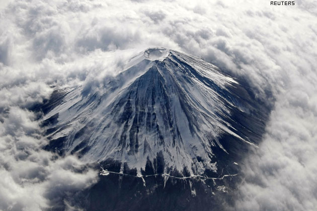This heavenly image is of Japan's Mount Fuji, covered with snow and surrounded by cloud, is seen from an airplane February 2, 2010. Mount Fuji(3,776 mts/12,388 ft) is Japan's highest mountain.