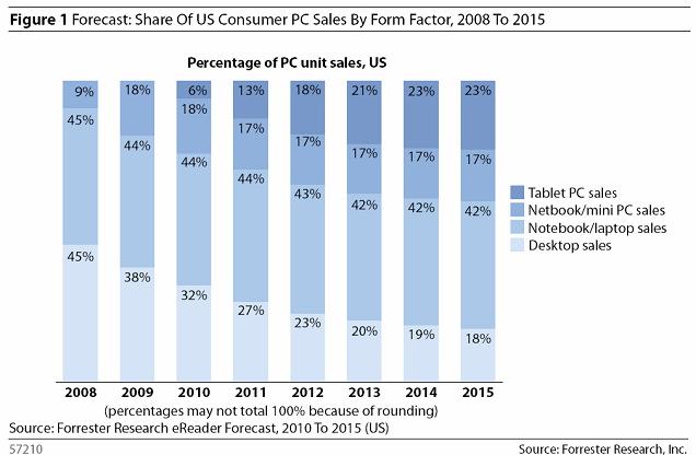 - In 2015, 23% of all PCs sold to consumers in the US will be tablets.