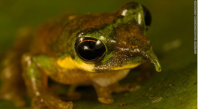 Leanne Alonso, director of RAP, told CNN: "It's a frog which goes up trees and lays its eggs on undersides of leaves. Its nose is probably inflating to call females. Usually frogs inflate under the throat when they call."