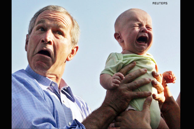 This Viral picture of US President George W. Bush with cry baby is dated back to 2006, July 13, during a visit to Germany. Bush hands back a crying baby that was handed to him from the crowd as he arrived for an outdoor dinner with German Chancellor Angela Merkel in Trinwillershagen, Germany.